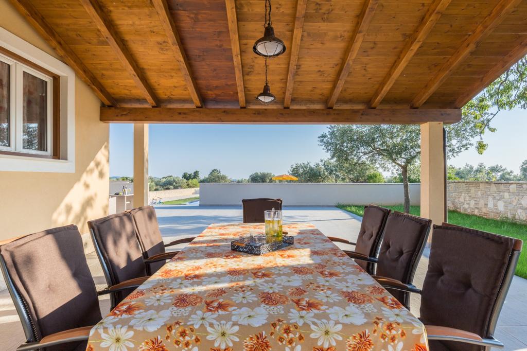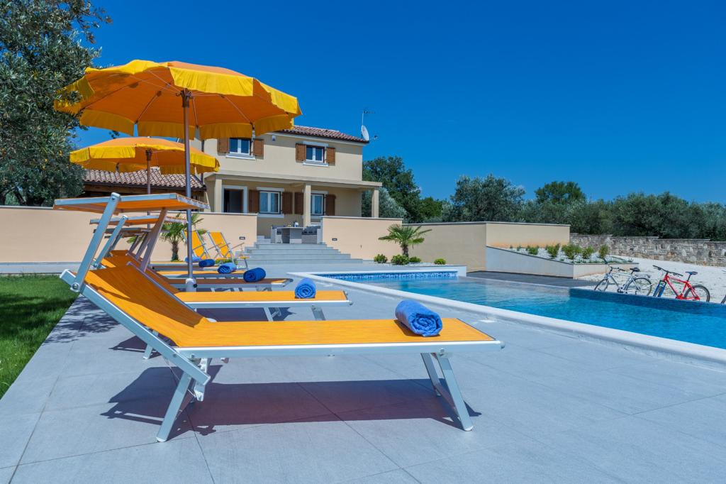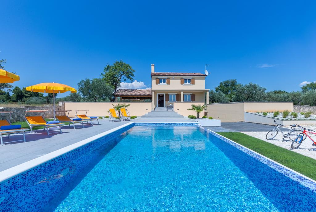 V Fažani prodajamo novozgrajeno kamnito vilo z bazenom, otroščim igriščem in urejena okolico z pogledom na Brione. Vila ima 180m2 ter ima 2300 pripadajočega zemljišča. Vrhunsko opremljena , možna takojšna vselitev.